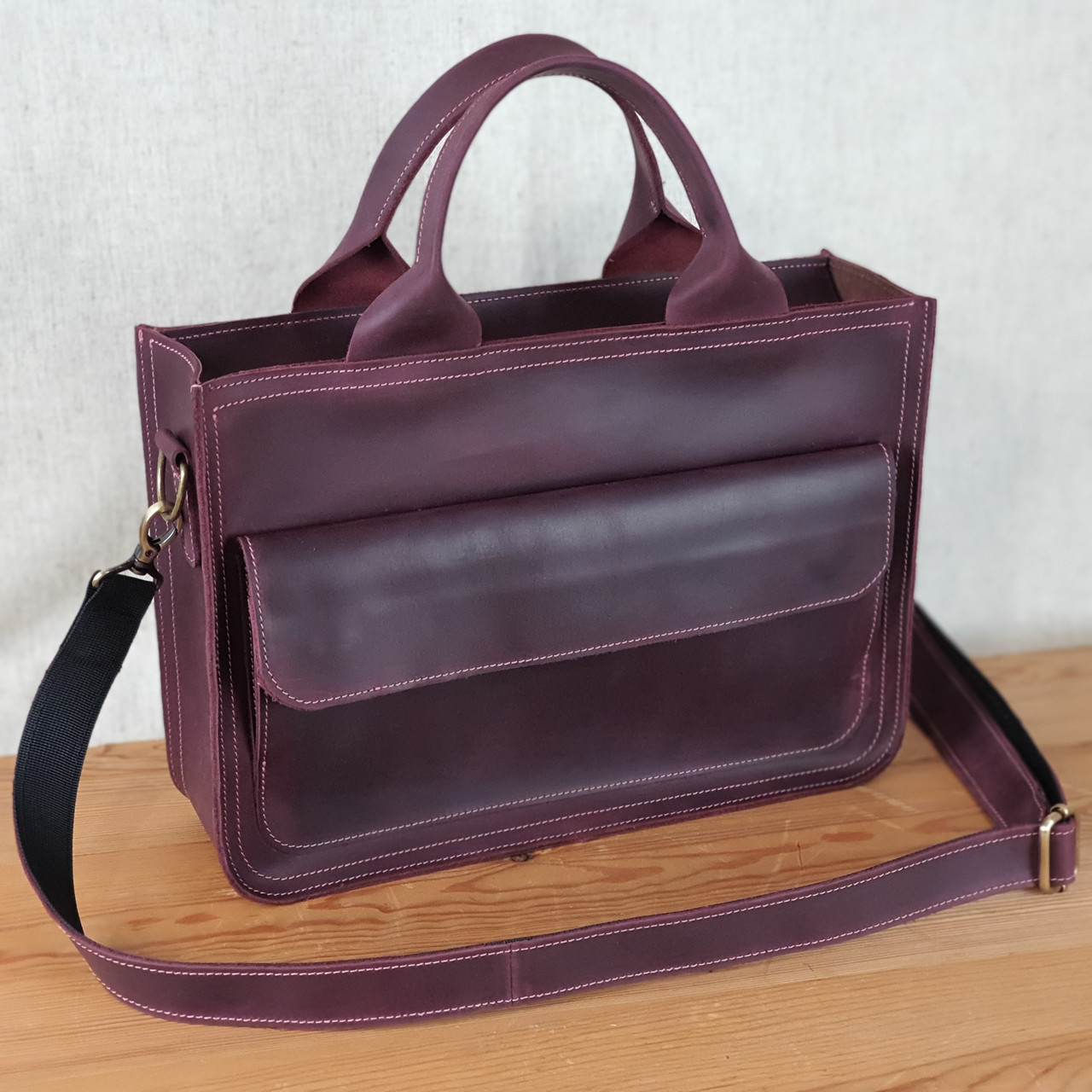 Жіноча ділова сумка GS з натуральної шкіри Crazy Horse бордового кольору. Цей вид шкіри відрізняється підвищеною міцністю і вінтажним ефектом старіння.