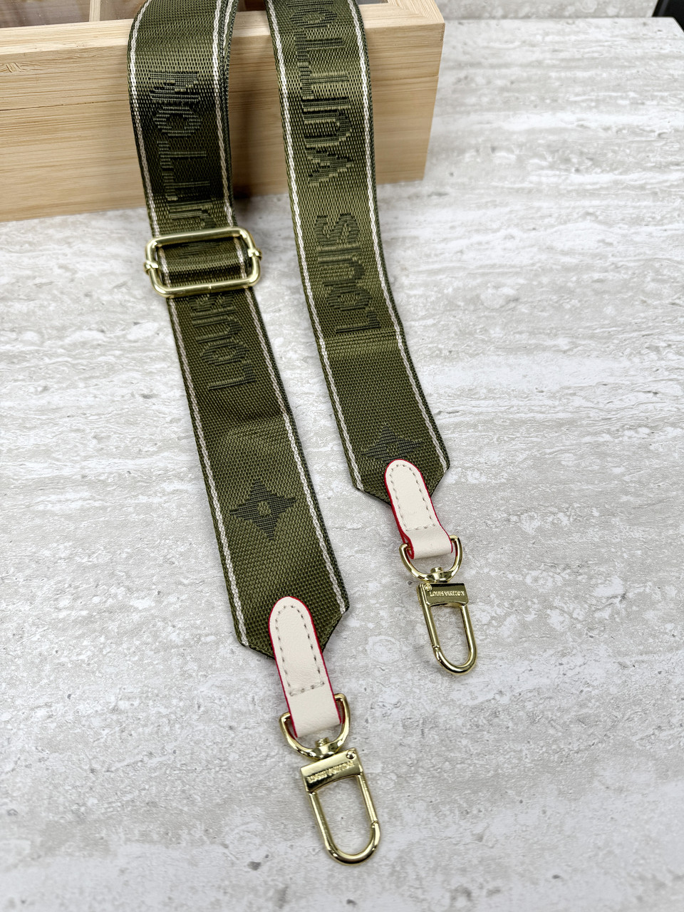 Ремінь на сумку текстильний зелений + світлий беж Louis Vuitton Луї Віттон
