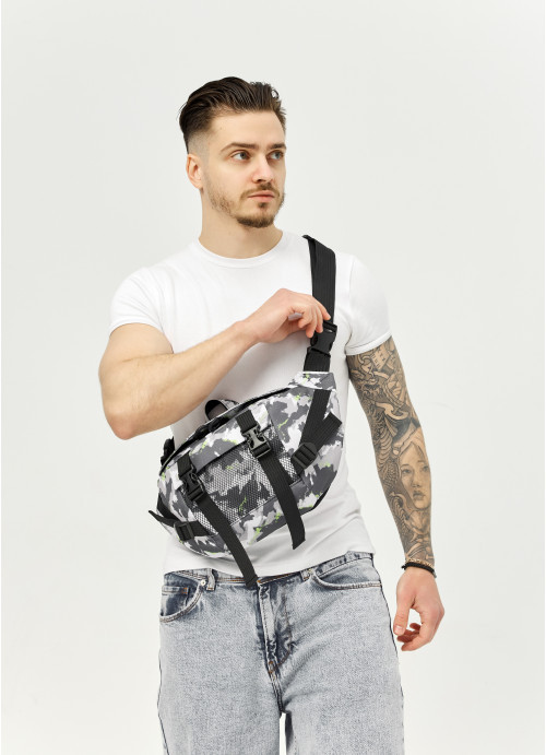 Велика чоловіча поясна сумка бананка Sambag DynamicDart тканева з принтом